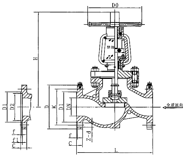 銅氧氣專用截止閥 主要外形尺寸、連接尺寸及重量